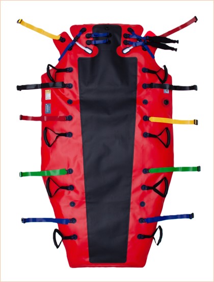 This vacuum mattress is designed with slits for seamless integration with rescue stretcher restraint systems.